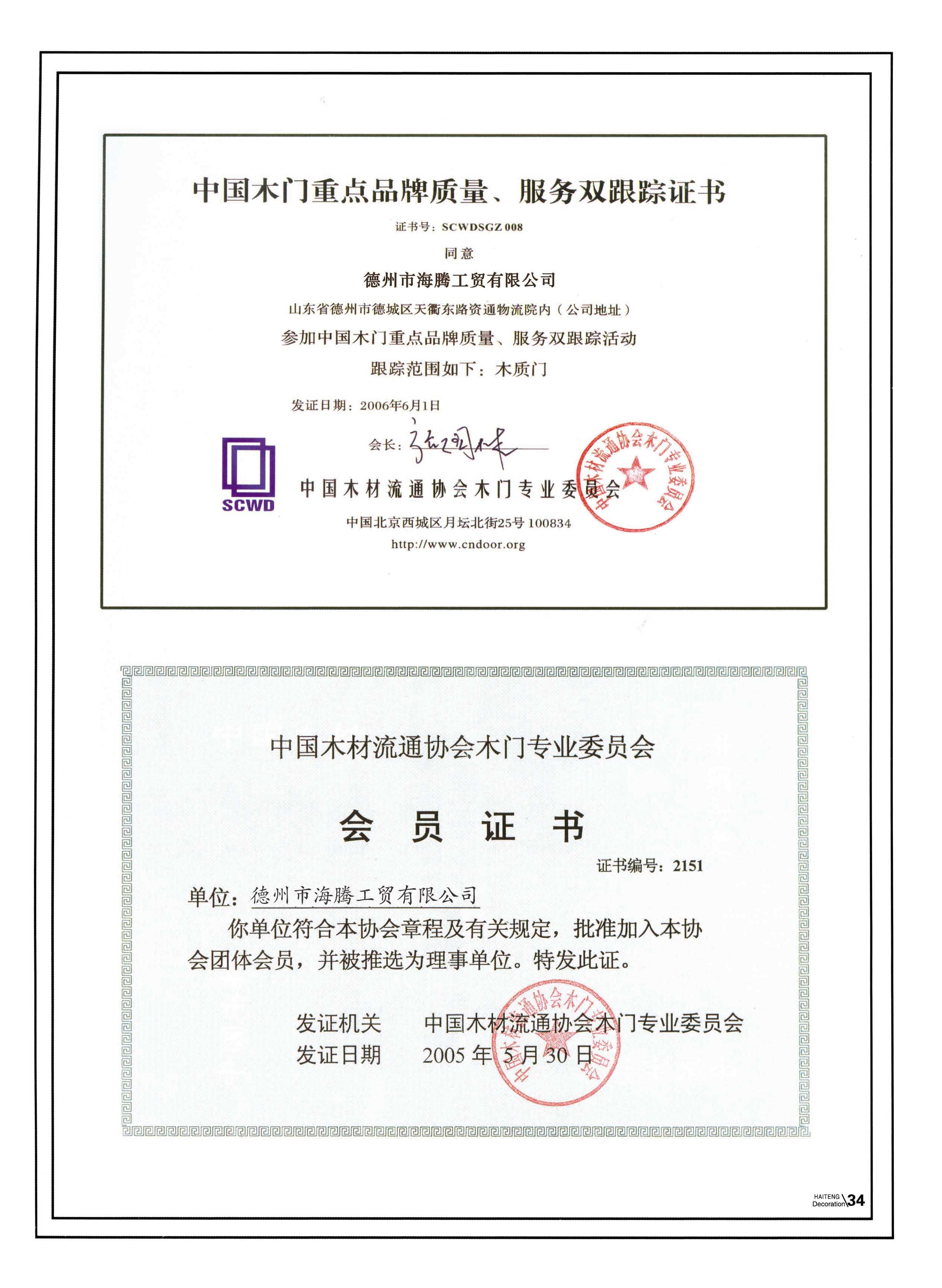 中國木材與木制品流通協(xié)會木門專業(yè)委員會副會長單位,堅持走"專精特新"發(fā)展之路。